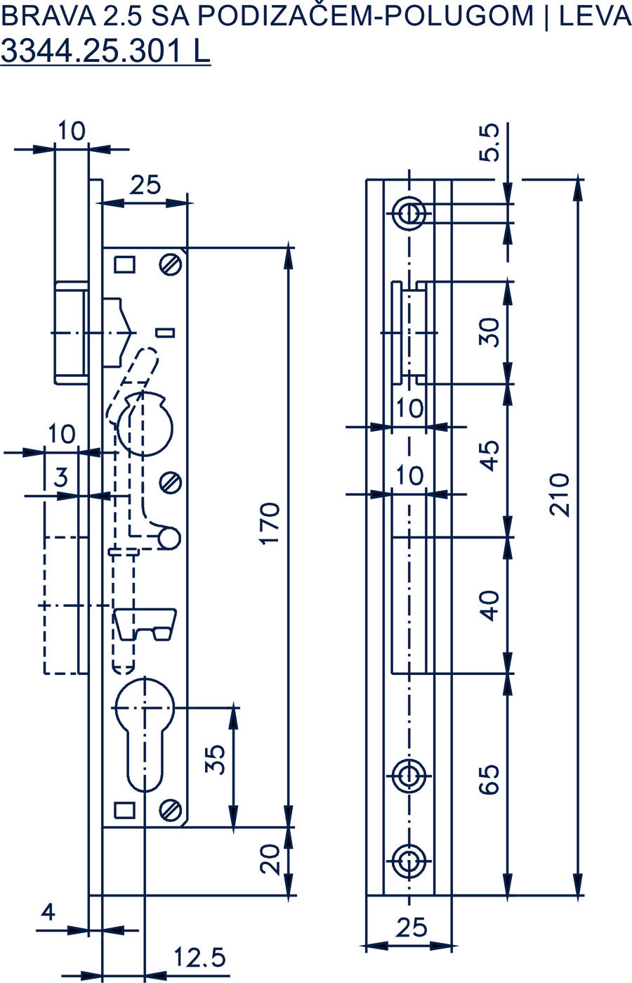 brava za metalna vrata 2,5cm s podizačem