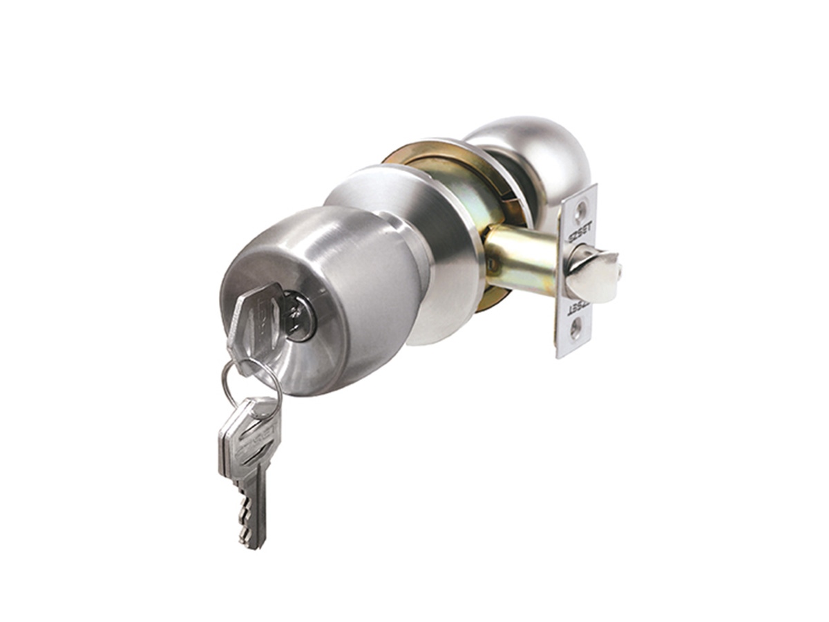 Obostrana kugla s jedne strane(vanjske) je cilindar s tri ključa a s druge strane je gumb(unutrašnje), način zaključavanja je vrlo praktičan pri izlasku iz prostorije pritisnete gumb i zalupite vrata vrata se automatski zaključavaju, prilikom ulaska porine se ključ u cilindar na kugli i okrene u smjeru kazaljke na satu te je tako kugla otključana i omogućen ulazak u prostoriju gumb također služi da i kada se nalazimo u prostoriji možemo zaključati.