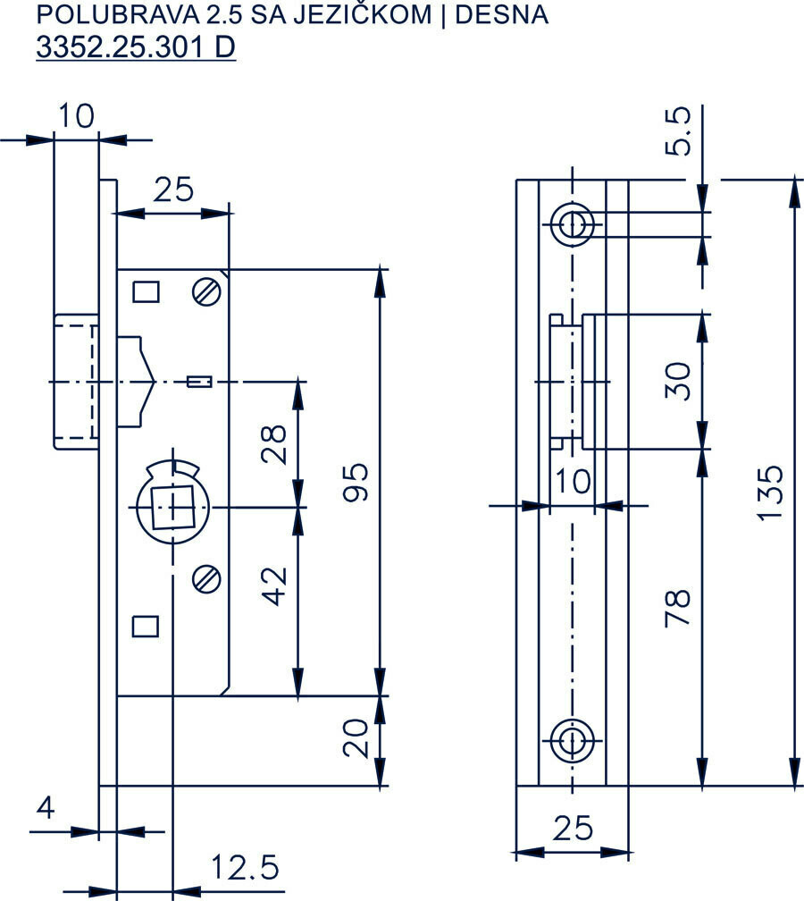 POLUBRAVA 2.5 ZA METALNA VRATA SA JEZIČKOM | LEVA ZAMAK