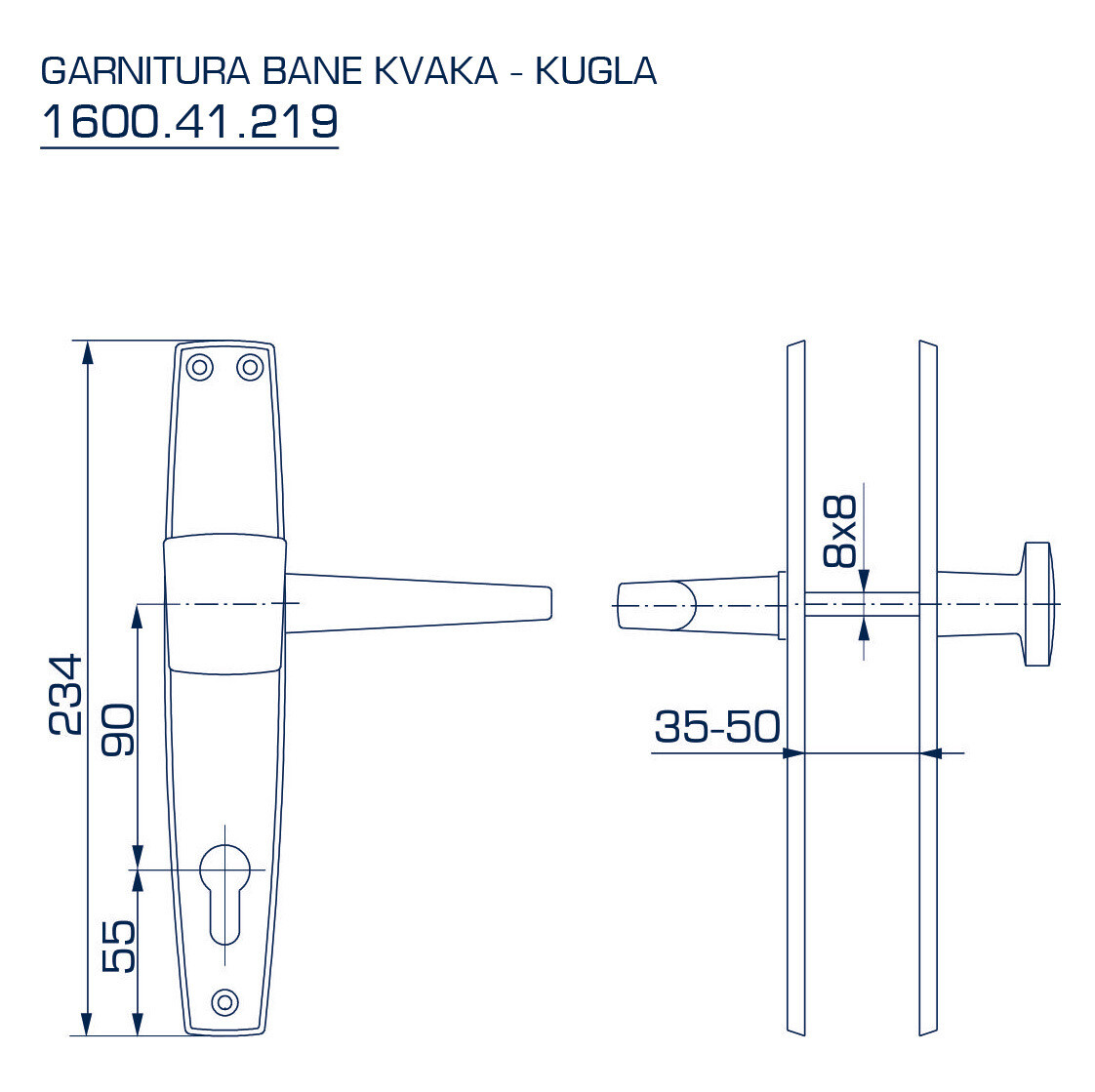 GARNITURA KVAKA-KUGLA: 1181 ŠTIT + 1182 KVAKA+KUGLA