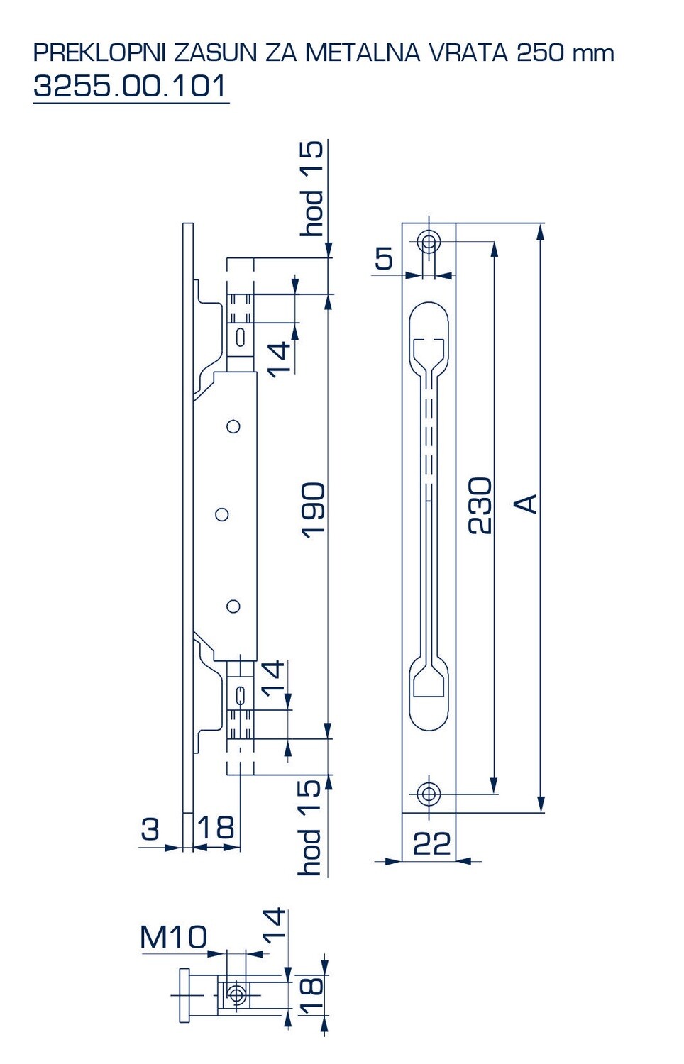 PREKLOPNI ZASUN ZA METALNA VRATA 250mm